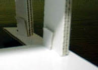| その1 e・d 柱パーツ2枚づつを 外表に重ね、 支えパーツに 5mm程差込みます。 切込み方向を間違えない ように。 |