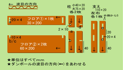 その2 c フロア2・1枚と柱を 切込みcで組みます。 |