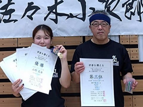 山野親子で参加してきました。 山野夏海 レディース小太刀 優勝 レディース長剣 優勝 レディース二刀 2位 団体戦 神戸市チーム 磯上、夏海、山野 3位 大会結果PDF |