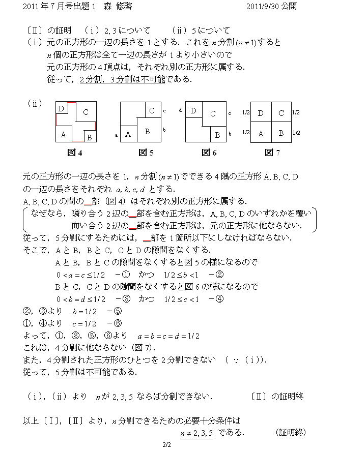 ※出題者の解答・解説(問題文も再掲)は,数学セミナー2011年10月号をご覧ください.