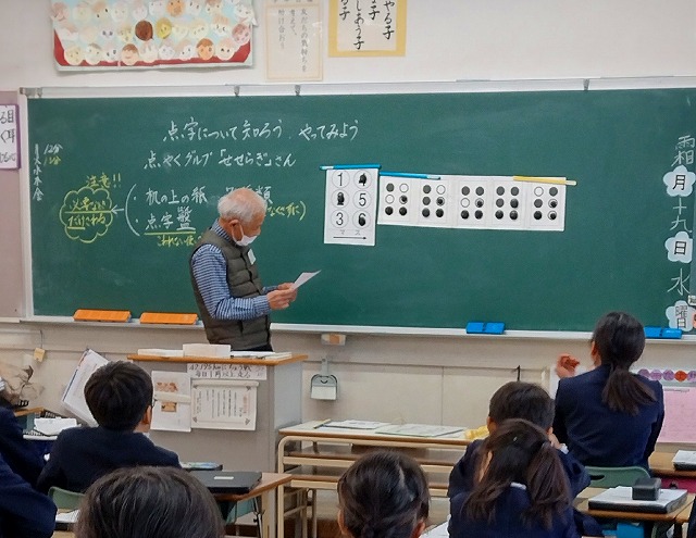小学校4年生の教室で点字指導を行いました。 皆、熱心に学んでくれました。