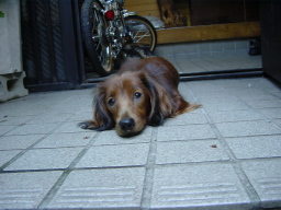 ヒンヤリとしたタイルの上で
