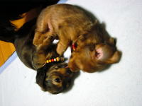 二匹とも髪の毛をボサボサにしながら、必死で教育してます!