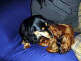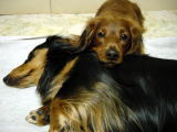 ダンクは、チョコの様子を気にしながら、何度もチョコの顔を舐めてあげていた。なんともほほえましい様子。終わったあとも、二人重なり合って仲良く寝ていた。ダンク・チョコ、本当にお疲れ様。 |