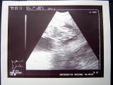 今日は、再び病院へ。40日目ということと、赤ちゃんの成長具合が気になっていたので行ってみることにした。今日も前回と同じくエコーマシーンでの検査。「順調に育ってますよ」の先生の言葉に一安心。そして、先生が指をさした画面の中に、ピコピコ動く小さな心臓を発見!!感動〜!!!生きてるぅ〜。赤ちゃんはちゃんと育ってくれていました!すこしの間、画面に見とれ、先生に今後・出産当日についての質問開始。先生は諭し落ち着かせるように、「2週間後の3月26日(交配54日目)のレントゲン検査の時に詳しく説明しましょう。」とおっしゃって、私たちは診察室を出た。少し興奮しすぎたみたい.