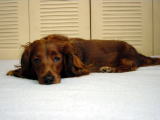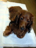 陰部が少し大きくなってきているような気がする。おりものの量も増えてきて、またダンクがチョコのお尻のニオイを気にするようになっている。濡れタオルでは処理しきれないので、軽く洗ってあげる。ついでにお尻まわり、お腹まわりの毛を短く切ってあげた。 |