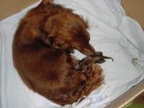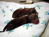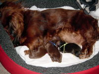チョコはかなり疲れた様子で、横になっている。あと二匹!頑張れチョコ! |