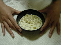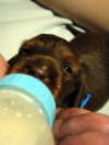 子犬用のドッグフードをミルクでふやかし(←写真左)