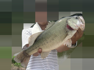 トヨチューさんも魚雷を1つ釣って戻ってきた。今度こそ状況的にも移動よねっ!ワタシは既に座り込んで竿も置いて移動待ち。 でもなんでか2人ともあっちの方へ行ったヾ(´▽`;)ゝ 戻ってくるまで しばし体力と相談しながらキャストして休憩なモード。 トヨチューさんがちらほら釣れてるのを見てウズウズ♪ でも体がいう事を聞かない! もどかしい! 暫くしてこの池を後にしました。 ドカンっ池 事前情報では、一見目に見えるストラクチャーは乏しくて何も無い。 おまけに底にウィードもまったく無いとかヾ(´▽`;)ゝ 特に釣れる訳でもないけど、前回フナを食ってるデブな 40up が釣れたらしい。 ワタシの狙いはもちろんソイツなのね。 当然コブナボールがあるって事なんで、ここではフナベイトがマッチザベイトかもッすぅ〜♪ 到着早々 20cm あるかないかのバスを釣る ああるサン。 ワタシは初場所なんでいかにもっていうインレット方面へ。 どうみてもここが1級ポイントだっ! 先取り成功! 我先キャスト! 釣れたも同然! っとおもいきやお二人はまったく反対方向へ・・・・? なんで?ヾ(´▽`;)ゝ 後で分かったことですがワタシのいるこっち側はとってもショボイエリアらしい♪ エスドライブやらスライドスイマーのスイムテストを兼ねて投げてみましたが無反応。 粘るか戻るか、どうすっか? 凸(´口`メ) ウラァ〜 あっちのほうで ああるサンの雄たけび! なんでもいらんことしてたら デカイのをキャッチ寸前でばらしたとか? いいきっかけだしぃ〜 すぐにあっちへイクゼっ! コブナボールを発見したんで迷わず フナベイト投入! でも良く見ると明らかにフナベイトの方がデカイッすぅ〜♪ アキマヘンッ d (>◇< ) !
