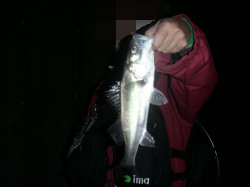 バイトと掛かり具合からして表層に出るほどの活性は無い模様。実際ワタシの場合、中層を早くも無く遅くも無い感じで巻いてバイトが殆どっす。 同じシンキングのサスケで中層・エドニスで上層を探ってもバイトが無かった。 岸沿いをタイトに引いてるとこれまた釣れた♪ 今日はこのサイズが圧倒的に多いのでしょうか? ドムドライバー@ビーフリーズ 78S ピンクバック/オレンジベリーにて 35cmGet!! (19:23) 岸から少し離れて壁にもたれて足元のバイトに備える。 喰ってくるのがはっきり見えたので、 「来たよ!」 っと先に宣言(笑) フッキングの勢いでそのまま抜き上げっす。 ドムドライバー@ビーフリーズ 78S ピンクバック/オレンジベリーにて 35cmGet!! (20:00) それにしてもここのシーバスは病弱なのが多いっす。 片目が白かったり体になんぞ傷がある。さっき釣れた奴は体の一部がえぐられていてスプラッターでしたわ。 ワタシが魚のサイズを測ってるときにノンさんにもヒット! Wヒットだっ!(正確にはズレてますが) ギィーーーーーーー! ドラグがなってるぞっ デカソウなのでノンさん慎重にやりとりっす。 ええなぁ 気持ちよさそう(笑) そして、ノンさんの背中に刺さっているタモをワタシが準備する(笑) 誰の目から見てもノンさんのタモはカッコイイ! しかも頑丈っす。 浮いてきたところで掬おうとしたらジャンプされてタモに入らずっ! 次のチャンスで強引に掬ってネトイン! 本日最大 Wヒットの 54cm っす! しかもルアーがスライドって所もいいっす。 それに凄く体高があって、卵でも持ってる感じでした。 ノンさん@スライド95 アルビノチャートピラルク にて 54cm!! (20:01)