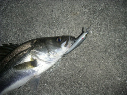 2005/12/05(月) 01:30〜09:00 中潮 暴風 晴 満潮 10:13(146) 20:31(137) 干潮 3:13(-11) 15:19(108) 月曜日に有休を取得して1日遊ぼうと思っていたケド、その日は最高に荒れるとか。 月曜の釣行は望めそうにないので、荒れる前に月曜の深夜に釣行を早める。 一人ぢゃ寂しいので急遽たっくんを拉致する。 先日、金土に製薬川下流にニュータックルの筆卸をしにいったケドさっぱりでした。 産卵時期に入ったのでやっぱり河口や湾港でしょうか? なので今回が正式な筆卸とする(笑) シーバスでの専用ロッドの必要性を感じ大枚をはたいて購入。 自分にとってこの釣りはオモシロイと思った! ・・・などどほざいて見た(ーー;)ゞ そうそう実はたっくんもニューロッドなの。 ↓な感じっす。 【ワタシのタックル】 ・ロッド スミス ブローショット3Dボロン SBX-87NR NightRadarNEW!! ・リール ダイワ カルディアKIX2500 NEW!! 【たっくんのタックル】 ・ロッド スミス ブローショットボロン BSB-92TW Tidewading92NEW!! ・リール ダイワ セルテート2500 同じブローショットシリーズですが、ワタシのは小沼正弥プロデュースの旧型。 でもたっくんのは最新シリーズのブローショットなの。 「ボロンズですなっ」 本当は最新がいいんですが、自分に合う条件でスローテーパーってことで3Dボロンにしました。 ノリの良さは抜群なのではやく試したみたい! でもこればっかりはお魚さん次第っす。 はっきりいって サイドワインダーからこのやらかさは致命的とも思える不安さですわ(笑) 01:30 荒川 現場に到着すると既に荒れ始めてたっす! しかも気温は0度キター♪ 台風のような暴風・・・最高に寒いっす。防寒対策はスノーボードウェアっす。 なので全然寒くないんですが、お手手とお顔だけはどうにもならないっす! 丁度釣り用グローブを紛失してないのよねぇ〜アウツd (>◇< ) 最初は長潮川に行く予定だったケド、堤防に上がると最高の荒れ模様。 急遽裏の荒川に変更。 テチテチと歩く。 既に干潮間近、そしてこの状況。はっきりいってこの状況で釣りをする奴はイカレテイル。 ポイントは照度の高いライトが水面を激しく照らしている! 水門があって、少しだけベイトもいる。でも肝心のシーバスはどうなのかなぁ 早速キャストしようと思っても PE にこの風は致死量っす! ましてやスピニングには慣れてないワタシ。 ほっときゃいつまでも風で PE が漂って着水しない。