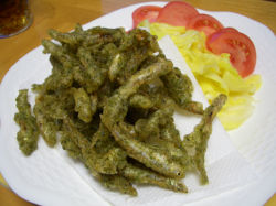 これ以上は釣っても食いきれないって事で納竿。 結局3時間ほどで90匹ぐらい。 一口サイズがほとんどですが、たまに大きいのも釣れたりしたよ。 サイズを競うより、数を競う魚種でっけど、ワタシはこののんびりした風景で 適当に出来るこの釣りがヨイとおもったわよ。 竿は買取だから次からは入場料のみでオッケェだし〜 また来年くるぜ。 帰りは氷付めにして次の日の晩御飯にしました。 腹を抜くか抜かないか迷いましたが、そのままイッター! 今回はおしゃれに磯辺揚げ♪ いちよ腹が心配だったので長めに揚げたら小さいサイズはスナック菓子みたいに・・・ 塩で食べたけど、やっぱり旨かったよ。