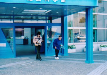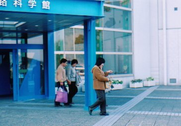 | バスへと急ぐ藤原さん親子 | パンフレットを見ながら歩く後藤さんと脇坂君 |