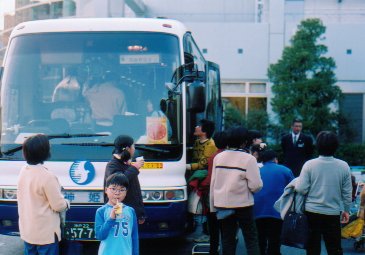 | みんなで帰りのバスへと! | 藤田君親子と岩見さん親子 |