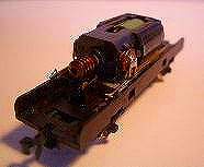 貨車に組み込んだ動力装置。外から見えないようにギヤを2段にしています。