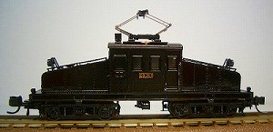 ワールド工芸から2006年7月に発売された「国鉄ED31」のキットを組みました。翌月に発売された「近江鉄道ED31」に比べてお値段が安い「サービス価格」でした。動力にはモーターが2個使われていて、複雑なギヤ類が無く、かみ合わせの調整もほとんど必要ありませんでした。それでいて走りはとてもトルクフルで、低速から安定して走ります。でもモーター自体は「SL三井埠頭5号機」に使われている物と同じ小型モーターで、長時間の走行には向かないとのことです。無骨な凸型電機ですが、その無骨さがよく表現されたよい製品だと思います。塗装はマッハの「黒」と「ぶどう色1号」を吹き付けました。金属製ならではのつやのある仕上げにしました。ホイッスルは金属製のパーツ(別売)が手に入らなかったので、KATOのDF50のパーツの余りを付けました。