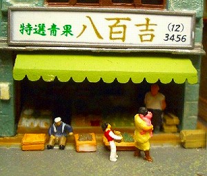 八百屋では子連れの母ちゃんが買い物。「今日は何かいいもんある?」「ウチの野菜はいつでも世界で一番いいもんだよ!」