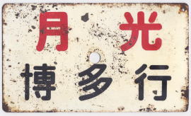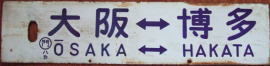 大阪―博多を新幹線博多開業まで昼行と夜行とで結んでいました。ホーローの愛称板と行先板は昼行用の475系用です。