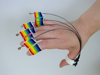 ワイヤーの長さは,手首から中指までの長さをご記入いただきますと,手の大きさに応じた長さに加工いたします。各指のワイヤーの太さは均一にする必要はなく,痙性の強さに従って組み合わすことができます。環指,小指のみ細いワイヤーにすることもできます。(オーダーメード依頼)