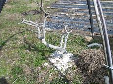 | 2009/3/7 差し穂12本を果樹園にあらかじめ準備していた二畝に等間隔で植える。 |