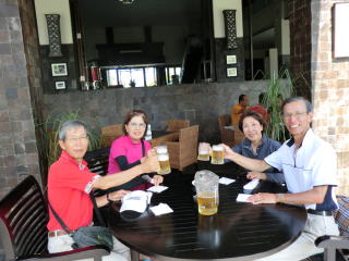 | 6月30日大阪からLSCの仲間K夫妻が短期(10日間)での滞在で来る。今年の日本は大変暑くバリが本当に涼しいのに大変驚いていた。確かに昨年のバリは日本同様に暑く、お誘いしたLSCクラブ員の皆さんが期待はずれであったようで肩身の狭い思いがした。一緒に食事をしたり買い物をしたりして、7月5日バリ在住のS氏のゲストでニュークタゴルフ場にてプレーをする。このゴルフ場は最近オープンしたインド洋に面したリンクスでインドネシアオープンも開催された雄大なゴルフ場だ。海を眺めながらのプレーにはK氏も大変満足されたようでお誘いした甲斐があった。帰途には近くのタイレストランに行く、ここは値段も安く味も良くいので客が多い。7日には今度はバリグランドゴルフ場にてK夫妻と我々夫妻でプレーをする、K夫人はまだゴルフを始めて間が無いので先日のニュークタゴルフには参加しなかったが、今回は初デビュー?だ。それにしてはなかなか上手いものだ。 |