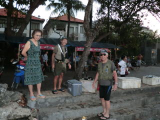 ![]() サヌールの海岸から釣りに出かけたを楽しむN氏とU氏 |