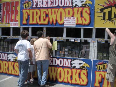 町には、臨時の花火売り場ができる。 Newport Beachに近いので海岸で花火をするのだろう。