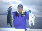 少し前に吉田君、桑原君、堀君が来た時には、ハマチが爆釣だった