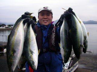 | 今日は久しぶりにマイボートで出航して来ました。今年は天候が悪い日が多くて 中々行けませんでした。久しぶりなので張り切っていってきました。 メンバーは南さん、三浦君、宮前君、僕との4人で行ってきました。 |