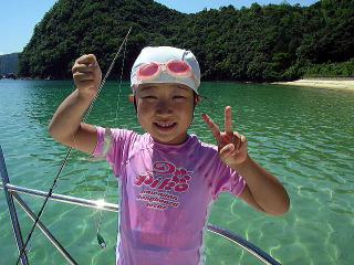 | 今日は家族サービスで毎年恒例のキス釣り、海水浴に行ってきました。 今日は天候もよく暑かった。今年も島陰に行きました。 仕掛けはササメ針の ジェットキスで狙いました。 |