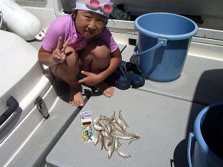 | 1投目から掛かり、ダブルもあり子供でも簡単につれて喜んでました。 去年よりはサイズが小さかったですが、1時間程度で20匹ぐらいは釣れました。 沖で狙えばもう少し大きいのが釣れたとは思いますが。 |
