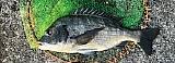 9月6日 南港新波止 5:30-11:00 エサ:フジツボ 釣果:井川12枚(〜47cm)、三木4枚 <井川> 台風一過、さてどうかいな。 まだすこし薄暗いなか川筋を見てやれば、、おおおウヨウヨ浮いてる!! 焦りながら落とすとメチャ浅いタナでアタッてるみたい。 でも、風がそこそこあってアタリ見逃して、エサ取り事件が続く。 結局、一枚目は一ヒロぐらいのところのアタリだった。 そうこうするうちに、すぐに見えチヌは激減。 腕がついていかずで、思ったほどにはものにできなかった。 それでも、朝のうちはそこそこアタリがあって数は増えていく。 スリット側も、柱回りや奥壁、やってみるが、今日はこちらはアタリほとんどない。 結局、今日の釣果はすべて川筋だった。 帰り間際には見えチヌが反応しだす。 焦りながら、ワクワクできた。 |