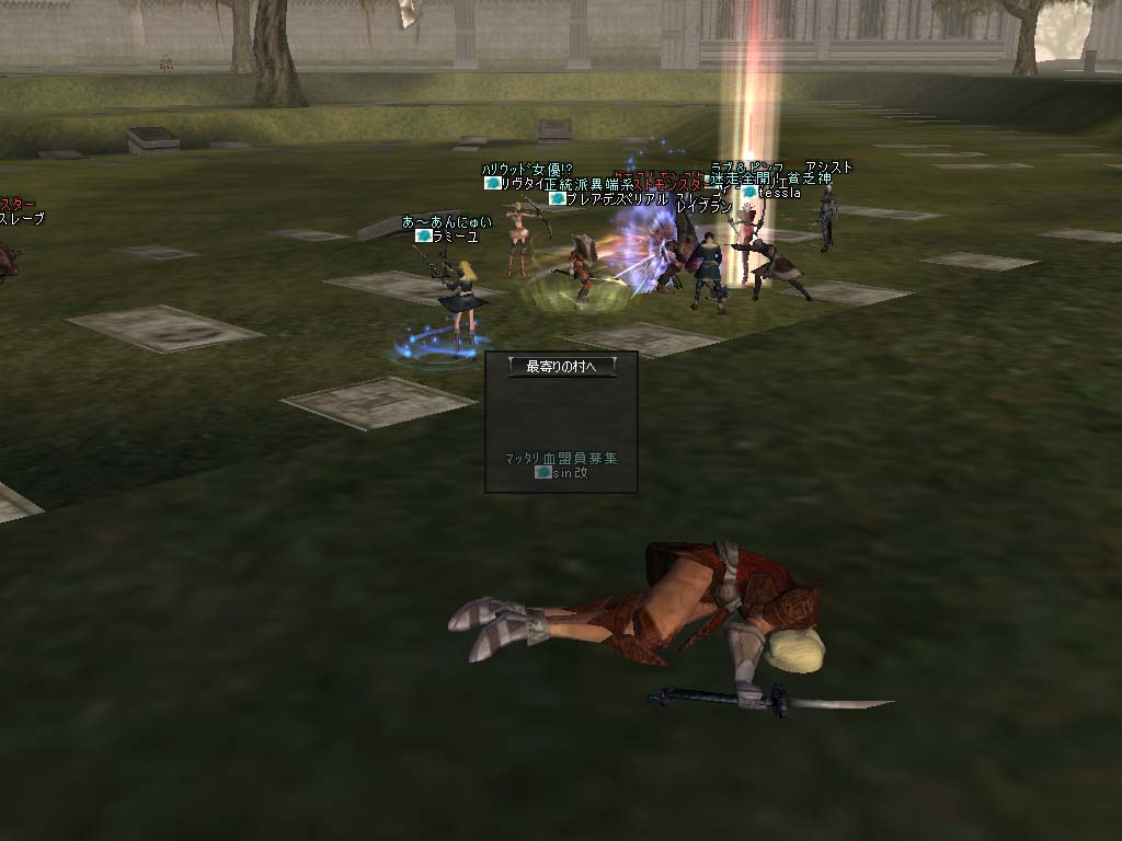 最後の血盟LV5のクエアイテム入手しました。死亡しながら・・・(爆) で残ったクエ敵の掃除をクランのみんなが掃除してるのを志望したまま見てます。ネタ的にはすごくよかったです(笑)