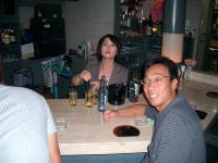 今日は久々に波乗組合の幹部会議でした。幹事長のゴリラーマンに西宮オオトカゲの3人でいつもの焼肉屋『金泉』にいきました。当然のようにヤクザサーファーの次郎さんもいて、大いに盛り上がりました。その後は幹事長いきつけのスナック『ザビエルの城(?)』に行きました。写真はチーママのおねえちゃんにデレデレするオオトカゲ。しかし、スナックではなぜ軍歌を歌うジジイがいるのでしょうね?