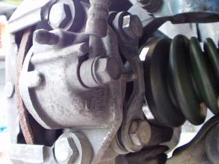 (2) キャリパーを裏から見ると このように見えます。ドライブシャフトのブーツの手前にあるボルト(19mm)2本を緩めて、キャリパー本体を 取り外すことになります。 キャリパーは、この2本のボルトだけで固定されています。 |