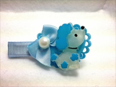 プードルとリボンのヘアクリップ モチーフの大きさ たて:3cm×よこ:4cm このプードルがとってもかわいい♪ 右側にとめるタイプ |