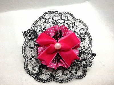 ブラックレースヘアクリップ モチーフの大きさ 約6cmの円形です。 ベルベットのリボンにパールがついてます。 ギャルな感じ♪ |