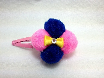 ポンポンパッチン留めD ポンポンモチーフの大きさ たて:4.5cm・よこ:5cm モコモコしてとってもかわいいです。 かなりボリュームのあります。 |