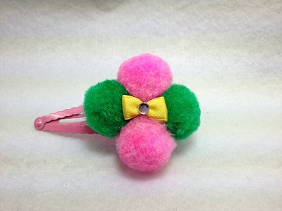 ポンポンパッチン留めI ポンポンモチーフの大きさ たて:4.5cm・よこ:5cm モコモコしてとってもかわいいです。 かなりボリュームのあります。 |