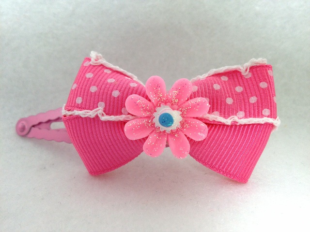 ピンクドットリボン&お花のパッチン留め |