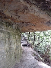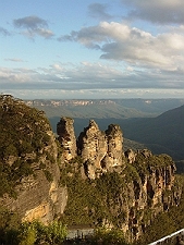 ![]() シドニーから電車で2時間のところにあるのが、Blue Mountains(ブルーマウンテンズ国立公園)。ツアーを使って日帰りでもいけるけど、あたしは友だちとなんと9日間も滞在した。ブルーマウンテンズに9日はさすがに長いらしく、山しかないのに何するん?!とよく思われた。日本語教師+ホームステイという日常の忙しさや、心からリラックスできひん状況を思うと、ブルーマウンテンズはまさにもってこいの休息の地。そういうわけで、クリスマスをはさんで9日間も滞在した。 滞在したのは、Katoomba(カトゥーンバ)というところで、初日、晩の11時過ぎに駅に着いて、そこから大荷物を(食料品もシドニーで買っていったため)YHA(ユースホステル)まで運ぶのは、ほんまに大変やった。あほほど重くて、何でスイカなんかこうたんやろう……と後悔も微妙にしつつ。まぁ、そういうところは、持ち前の気合とガッツで乗り切った。このブルーマウンテンズで、山歩きを楽しもうと思ったら、ほんまに必要なのは『気合とガッツ』やと思った。 9日間は、リラックス(本気でなんもせぇへん)と山歩きで過ぎていった。ブルーマウンテンズに行った時、ちょうどクリスマスで、クリスマスの昼間に街をうろうろしていると"FREE LUNCH"という看板を発見。絶対うそや、と怪しみながら公民館のようなところに行くと、ステージでバンドが演奏していて、それをボケーっと眺めていると、いきなり注文を取りにこられて、気が付いたら『Yes, please』とか言うてちゃっかり関に案内されていた。相席したのが面白い人で、韓国人と、その友だちの韓国語と英語がしゃべれる日本人と、日本語がしゃべれるオーストラリア人。すげぇ。しかし、自分だけこんなフリーランチを食べている場合ではない!!と思って、YHAでだらだら過ごしていた友達を『ええから来い』と呼び出して、フリーランチを頂いた。プレゼントももらったし、なんかラッキィやった。食べ終わってからその辺をうろうろしていると、映画館を見つけて、クリスマスプライス7ドルになっていたから観て帰ることにした。そのとき観た映画は、ジムキャリーのLemony Snicker's A Series of Unfortunate Eventsという映画で、ジムキャリーが相変わらずやりたい放題で、すげぇなぁ、あの人は、と思った。エンドロールがとてもよかった。なんか怪しげな雰囲気のカートゥーンで、映画によくあっていた。 全く、山に関係ないことをする日もあれば、もちろん山登りだけをした日もある。はじめこそ、楽なコースを歩いていたんやけど、時間はあるし、同じところばっかり歩くのも面白くないし、ということでだんだん山歩きはエスカレートしていった。最終的には、往復で7〜8時間くらいかかるというRuined Castle(ルーインドキャッスル)へ行くコースも行った。しかも、トレッキングシューズなんかもってへん2人やから、かたやプーマ、かたやコンバースと、山歩きをなめているような出立ちやった。ブルーマウンテンズには、『スリーシスターズ』という岩の伝説があって、三姉妹が魔法使いのおばあさんに一時的に岩に変えられていたけど、そのおばあさんが死んでしまって永遠に人間の姿に戻ることはなく、今も三つの岩として残っている、というもの。ブルーマウンテンズのパンフレットとかには必ず載っているくらいの有名な岩やから、どれだけでかいんか、と思って行ってみたら、結構そうでもなかった。ちょっと期待はずれでがっかり。それに、この岩はエコーポイントというところから見られるんやけど、エコーポイントというのはバスから降りてきた観光者がちょこっと景色を……、感覚で景色を見るところやから、ほんまのきれいな景色を観ようと思ったらそんな楽をしていてはあかんな、と思う。というわけで、歩けや、歩け、です。 ![]() 長い、そしてめっちゃ急な階段を下って、まだ下って、ほんまに下って、下って、下って行くと、Rain Forest(レインフォレスト)と呼ばれるエリアにたどり着く。レインフォレストというのは、日本語では『多雨林』というらしく、地面が湿っていて、歩きやすかった。それに、山の下のほうにあるから、緑がほんまに青々としていて、気温もだいぶん低かった。歩いているだけで気持ちよくて、マイナスイオンと言うやつがでまくりなんやろう、と思った。Leura Forest(ローラフォレスト)というところがほんまに気持ちよかった。レインフォレストを歩いている時は、ええなぁ〜ええなぁ〜、ですむんやけど、それを終わった後の、階段が地獄。下りたらもちろんのぼらな帰られへん、これ常識……。分かってはいるんやけど、ほんまに辛かった。これが最後の階段に違いない!!と思って登りきって、曲がったら、まだあるし!!!とほんまに、ツッコミ倒しの山歩きやった。けど、不思議なもんで、だいぶんその階段も辛かったはずやのに、今となっては、レインフォレストが良かったという印象の方が強い。そして、この山深いレインフォレストウォーキング