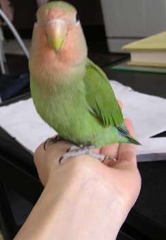 半月前、鼻の中心が突然ハゲてしまい、健康診断で先生も「?」という感じでしたが新しい羽が生えるのが遅れたからのようです。 毎日赤い部分が少しずつ増えるので、夫が「どうしてしまったんだ?」と不思議そうにしています。 |