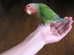 私の方はぴぃ たんから手に入ってくればニギニギして遊びますが、ちょっとクネクネしたらすぐに解放します。 夫の行動を見てて、最初はかわいそうでかわいそうで、すぐに止めさせていたんですが・・・、実は肝心のぴぃ たんがそう嫌がっても怖がってもないのが分かったので、もう好きなようにしてもらってます。 ぴぃ たんは嫌なことをされると噛み付くんですが、ニギニギすると「ギイーギイー」と言いながらも決して噛み付いたりしません。嫌がりながらも実は嬉しいみたいな・・・、なんだか変なインコです。 解放してもすぐに手の中に入り込んできてしまいます。 |