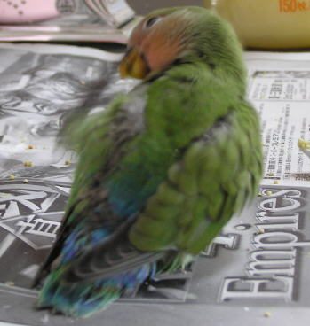 | 「クチバシが届くような届かないような・・・。むぅーーー。」 |