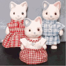 左のみけねこは色白なので、割とどんな色の服を着せても合います。