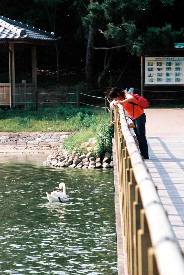 一応境内です。大きな神社の中には自然のままの林が、素晴らしい環境が残されています。 しかしそれって、自然を大切にする思想が神社の中だけに残されて、社会で実践されてないって事でもあるんじゃ。 ここには白鳥が留まっていました。よほど居心地がよかったのでしょうか。 やっぱり、神社だからかな?