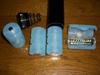 | マグライト4セルDは軽量化のために単三電池化しています。 単1から単3にすると点灯時間が大幅に減少するので単3リチウム電池を使います。