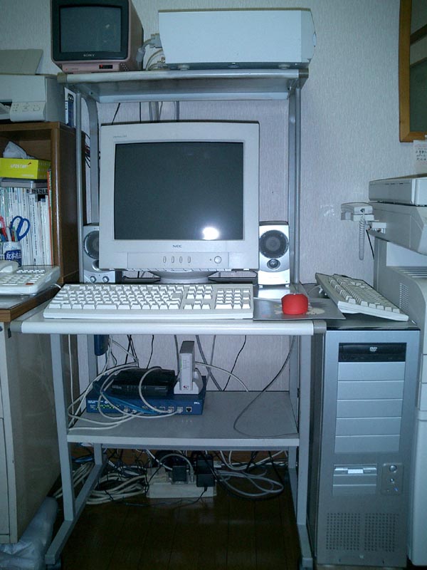 ![]() | 自作です。 トップページはプロバイダーのHPで、 容量の大きいコンテンツはこの中で動いてます。 UPSは在りません。雷が鳴り出すと手動で電源を切ります。 |