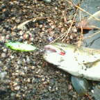 | 朝一、1投目で即ヒット!!さいさきが良い感じしたのですが、続かず・・・そうするうちに、雨が、しかも、雷まで・・・天気予報では、晴れだったので、雨具を持たずにいた為、ずぶ濡れ。 |