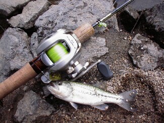 | BPベイトの 『 ローリングクラッカー 』 入荷記念にて淀川にてキャスト練習に行ってきたついでに、偵察です。ワンド内には、鯉?と思われるライズが沢山ありました。鯉釣師は周りに5人ほど・・・そのなか、またもや、水面で小魚を追っているバスを発見!!ベイトは水面を ピョンピョン はねて逃げ惑って、シャローに追い込められています。 すかさず、バニー54を切り取り、コアユにチェンジ。キャスト後、ウォーキングを3アクションほど・・・ストップ・・・バッシャーン!! 同程度2匹と、満足! |